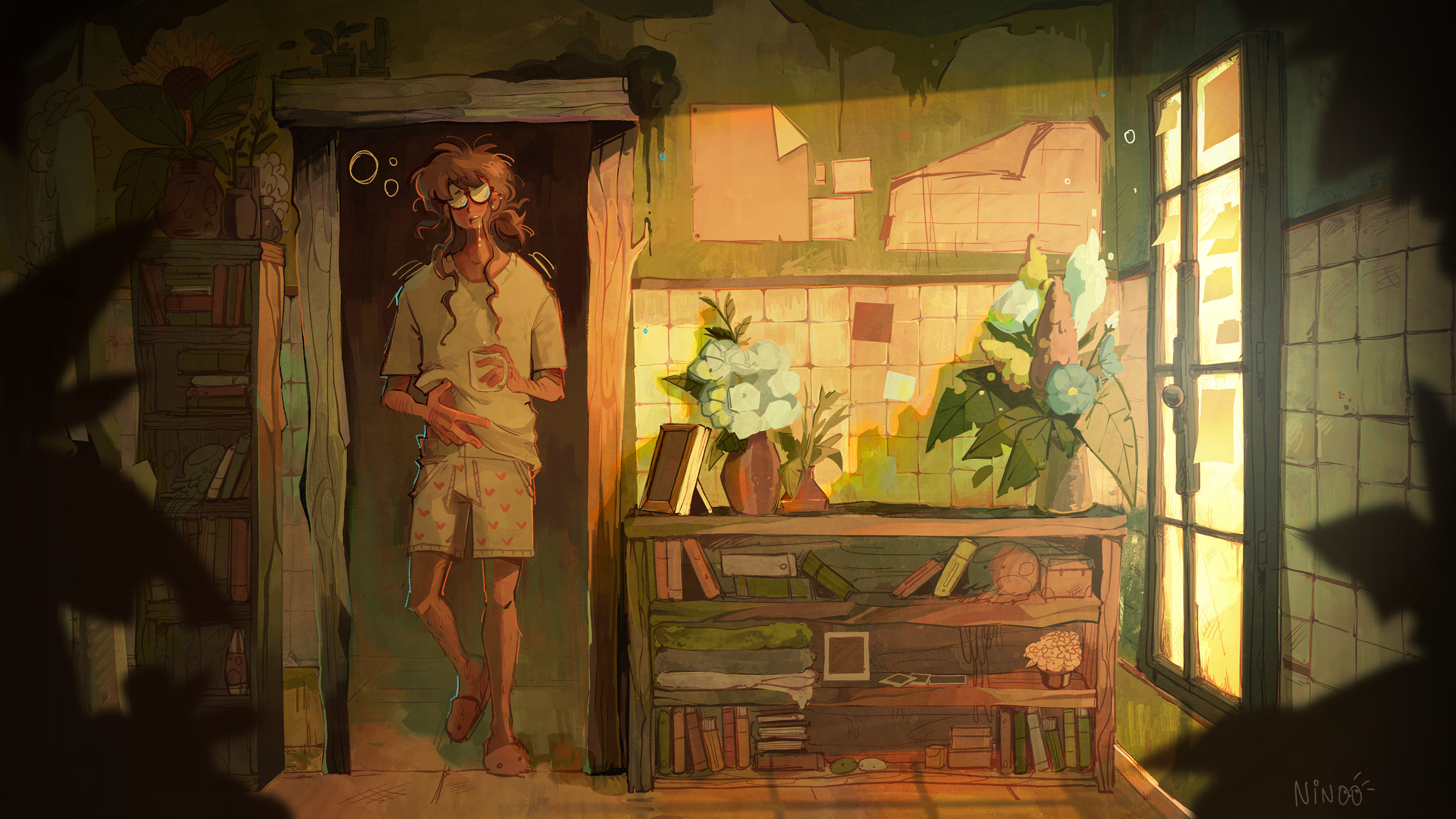 I had fun with the painterly textures and the colors. Even if I mainly want to draw characters, I like putting them in little scenes... They feel more alive :)